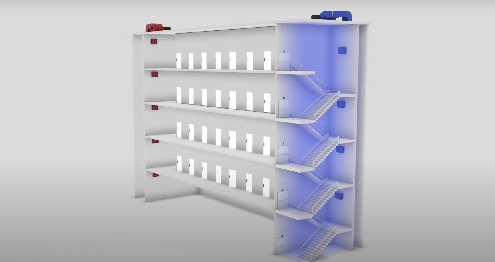 During normal condition, the system can be used to routinely perform functionality tests of Stairwell Pressurization, Smoke Extraction, Fire and Smoke Protection Systems.